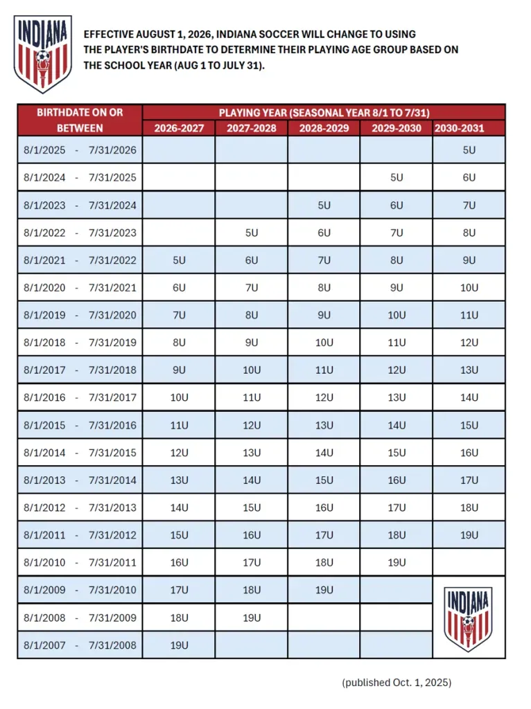 Why is the age group cut-off changing from January 1 (birth year ages)? There are multiple reasons for this change. First, the Aug. 1 age group cut-off most effectively reduces the number of “trapped players” in youth soccer and reduces negative impacts on these players at multiple stages of their career. “Trapped” players are those who, due to soccer age group cut-offs, are in an older soccer age group than their school year. Trapped players have significantly reduced competition opportunities and disrupted training experiences in 8th grade (when most of their team is in high school) and are similarly negatively impacted four years later when players from the older soccer age group, but who are still in high school, are moved down into the same soccer age group. “Youth soccer has been talking about January 1 vs. August 1 for years,” said Mike Cullina, US Club Soccer CEO. “From my experience managing two clubs and a league in Virginia, a range of 2-5 players per team were negatively impacted by a Jan. 1 cut-off date in their eighth grade and high school senior years. US Club Soccer’s staff and board of directors regularly communicate with our leagues and clubs, and we’ve determined that that range remains accurate today. “That’s a huge number of kids who have been adversely affected by the January 1 cut-off date. While coming to this decision has taken additional time, improving the experiences of hundreds of thousands of players was worth the extra time to gather research – particularly team rosters with graduation years and school start dates – and most importantly, listen to the youth soccer community.” Second, an Aug. 1 age group cut-off best aligns soccer age groups with school year ages, maximizing the number of players who participate in soccer programs with their school-year friends. This alignment has a positive correlation with increased numbers of youth players entering and staying in the sport. This decision to move to the Aug. 1 cut-off reverts to the same age group cut-off used prior to 2017, when U.S. Soccer mandated a Jan. 1-Dec. 31 timeframe. U.S. Soccer removed this mandate in late 2024, empowering its Organization Members to make the most appropriate age group formation decision for their members. US Club Soccer, US Youth Soccer and AYSO – the three largest youth soccer organizations in the country – have remained in lockstep in making these decisions, recognizing the importance of consistency across the landscape. Why is Aug. 1 a better age group cut-off than Sept. 1? Initially, US Club Soccer, US Youth Soccer and AYSO had determined to use a Sept. 1 age group cut-off instead of Aug. 1. After receiving significant feedback and identifying missing information in Department of Education school year cut-off lists, it has been determined that the Aug. 1 cut-off best reduces misalignment between age and school year. The Aug. 1 cut-off reduces not only the trapped player effect, but it also reduces the number of “force-ups,” a term referring to players in a younger soccer age group but older school year who must play up an age group in order to be with their school-year friends. US Club Soccer believes: An Aug. 1 age group cut-off best balances the desire to reduce both the number of “trapped” players and the number of “force-ups” in youth soccer. A Jan. 1 age group cut-off creates the highest number of trapped players and negatively impacted youth players. No age group cut-off will eliminate all trapped players or force-ups. States and counties throughout the country have widely different school year cut-offs, and this variance will always result in some number of trapped players or force-ups regardless of age group cut-off date. There is no soccer developmental benefit to any specific age group cut-off , and no age group cut-off reduces concerns of relative age effect or changes the number of players impacted by relative age effect. Relative age effect is the phenomenon of players born in the first three months after an age group cut-off to be over-represented in identification programs due to early maturation compared to their age-group peers. Age group cut-offs have no correlation or relationship with level of play or level of soccer aspiration . Various soccer age group cut-offs are used across the world in youth soccer, in both amateur and professional programs. Again, please note that this decision is effective beginning with each Organization Member’s 2026-27 season/registration year .